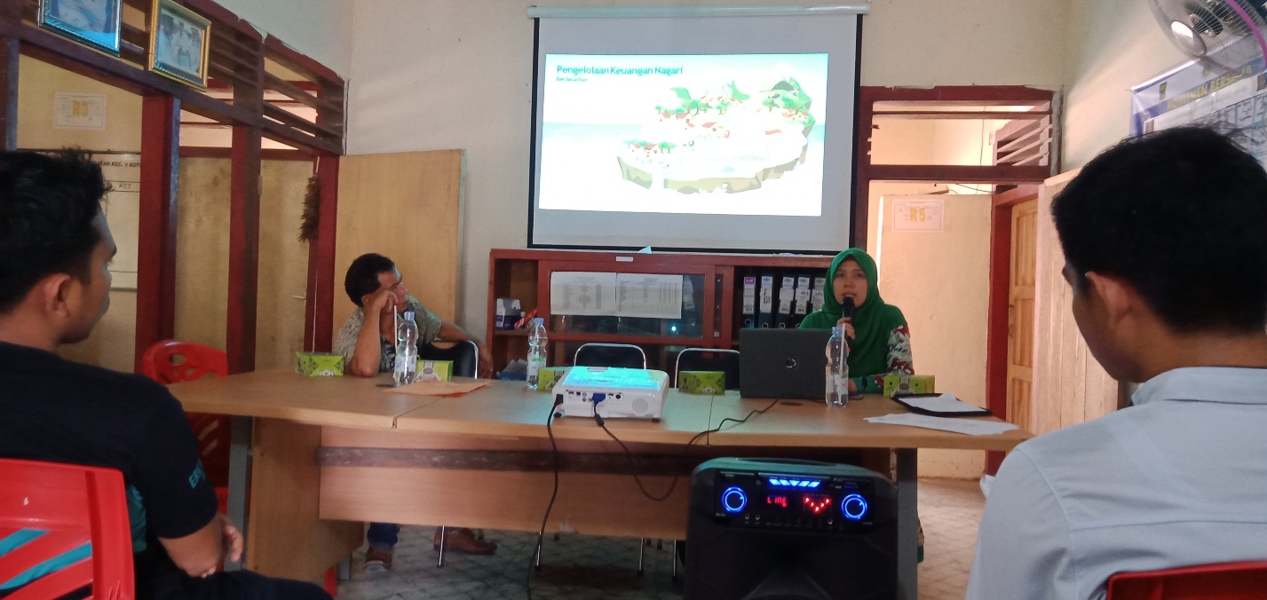 Pelatihan dimulai dengan bacaan doa, yang dilanjutkan dengan sambutan dari Bapak Wali Nagari Campago Selatan (Hanafi), dan dilanjutkan dengan sambutan dari Bapak Camat V Koto Kampung Dalam (Vemi, S.Sos) sekaligus membuka acara pelatihan ini, dalam hal ini Bapak Camat V Koto Kampung Dalam menyampaikan tupoksi masing-masing perangkat dalam hal pengelolaan keuangan Nagari dan tata kearsipan Nagari.